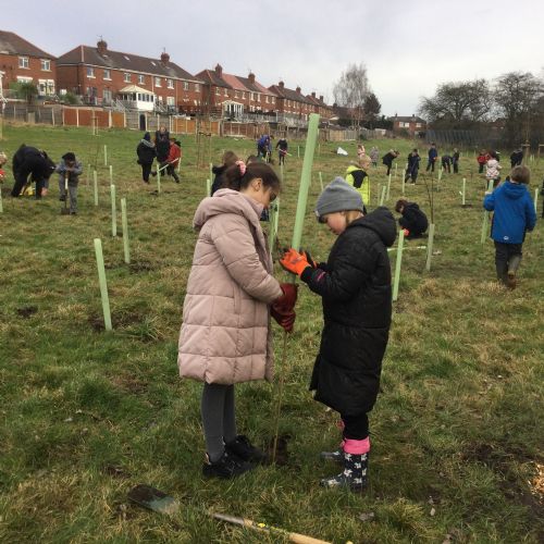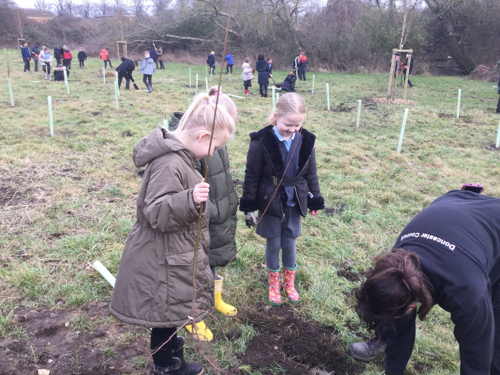On 5th February 2025, our KS2 children participated in an enjoyable and worthwhile initiative which had been organised by the Sustainability team at Doncaster Council. We were invited to join them in a community tree planting day close to our school. Spending time outside in the spring sunshine, connecting with nature was wonderful for our wellbeing, and was highly enjoyable for all involved. It helped strengthen our community links and supported us in helping the children to understand their responsibilities as community and global citizens - one of our key curriculum principles. Care for Creation is one of the seven principles of Catholic Social Teaching, which we continually embed here at St. Peter’s.