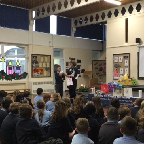 On Friday 12th December, we welcomed Mrs Matthews into school to deliver an Assembly on how we can support CAFOD. She spoke about the World Gifts programme and how gifts related to the Advent themes of Hope, Peace, Love and Joy are making a difference around the world.
